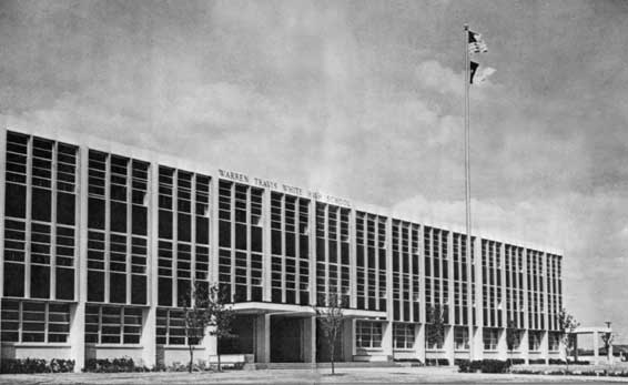 Warren Travis White High School was built in 1964 and took in students from Thomas Jefferson High School that lived north of Royal Lane. The first graduating class was the Class of 1966. The school is located at 4505 Ridgeside Drive. It was named after Warren Travis White (1895-1987), superintendent of the Dallas Independent School District and an alumni of The University of Texas (hence the school mascot and colors).